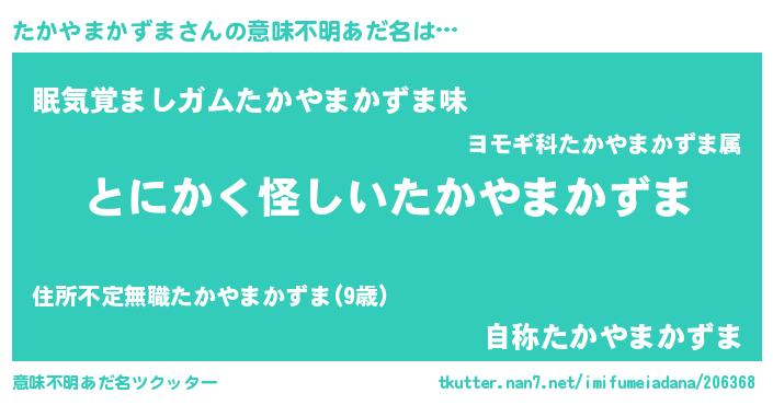 男性向けラノベタイトル風あだ名 | 『たかやまかずまの嫁は女の子じゃないと思った?』 |