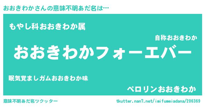 女子向けラノベタイトル風あだ名 | 『おおきわかの婚約者』 |