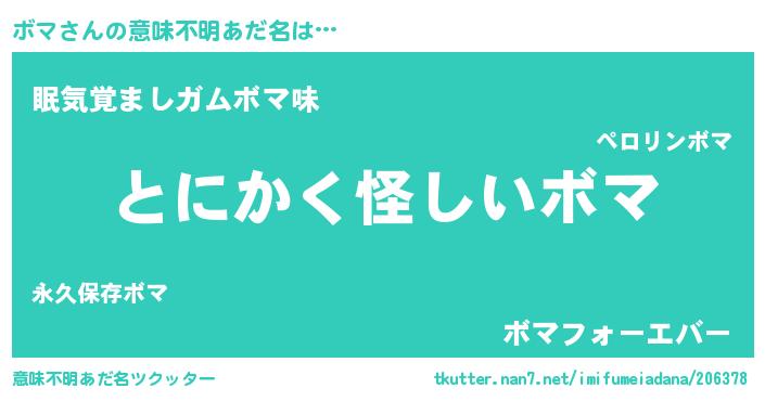 男性向けラノベタイトル風あだ名 | 『ボマの嫁は女の子じゃないと思った?』 |
