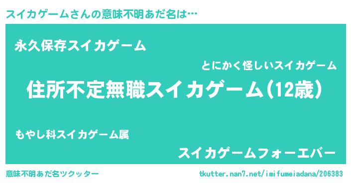 ポケモン風あだ名 | 『スーイイ』『ゼニスイ』 |