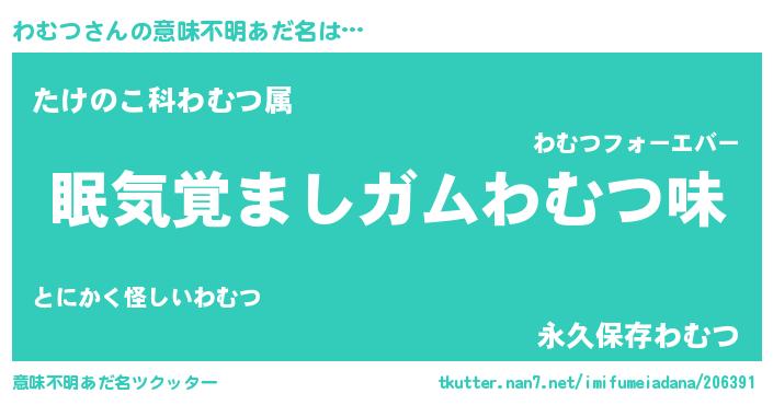 | ヘコむあだ名 | 『わむつ(爆)』『豆乳』『わむ太郎』 |