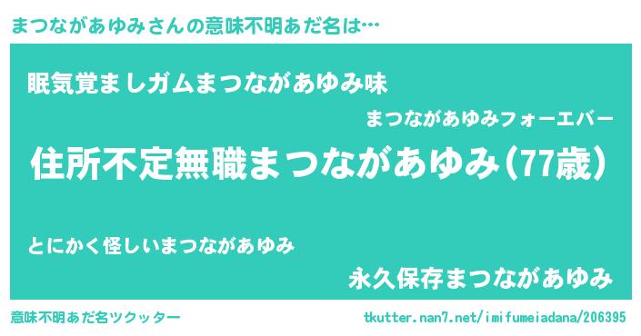 胡散臭い通販商品みたいなあだ名 | 『あなたにだけ特別に提供する世界で10本だけ現存している希少なブランデー…その名も「まつながあゆみ」』 |