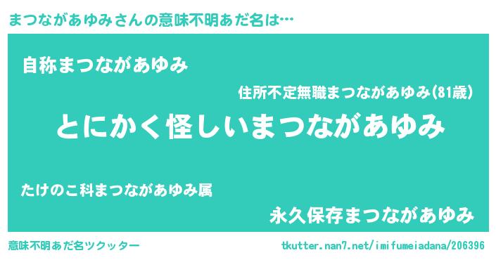 男性向けラノベタイトル風あだ名 | 『まつながあゆみの嫁は女の子じゃないと思った?』 |