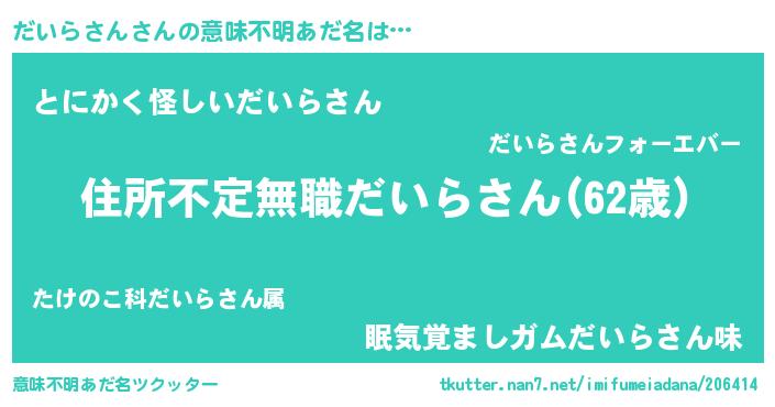 | ポケモン風あだ名 | 『ダーイイ』『ヒダイラサン』 |