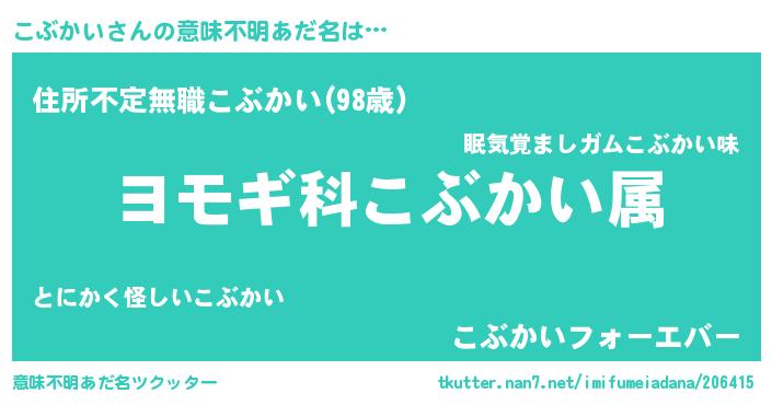 | 男性向けラノベタイトル風あだ名 | 『こぶかいに滅ぼされるだけの簡単なお仕事です』 |