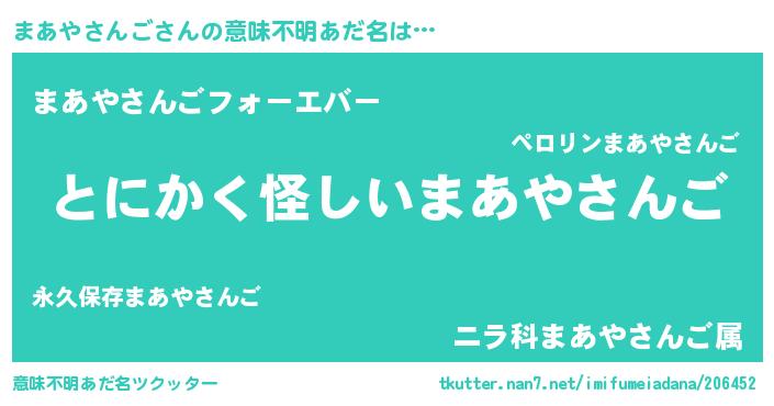 | 男性向けラノベタイトル風あだ名 | 『まあやさんごに滅ぼされるだけの簡単なお仕事です』 |