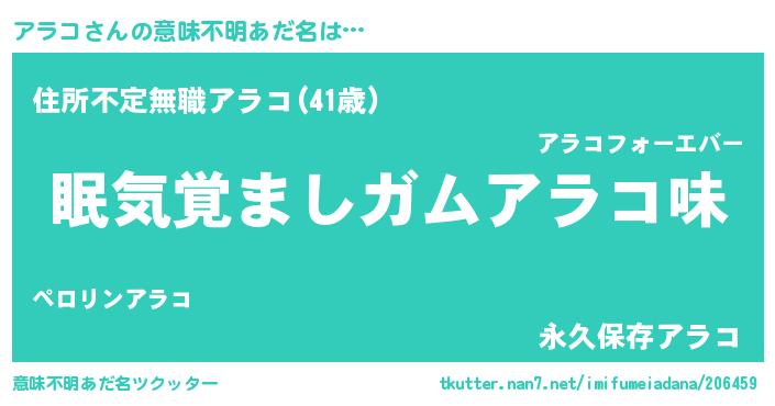 | ヘコむあだ名 | 『アラコ(苦笑)』『豆乳』『アラにー』 |