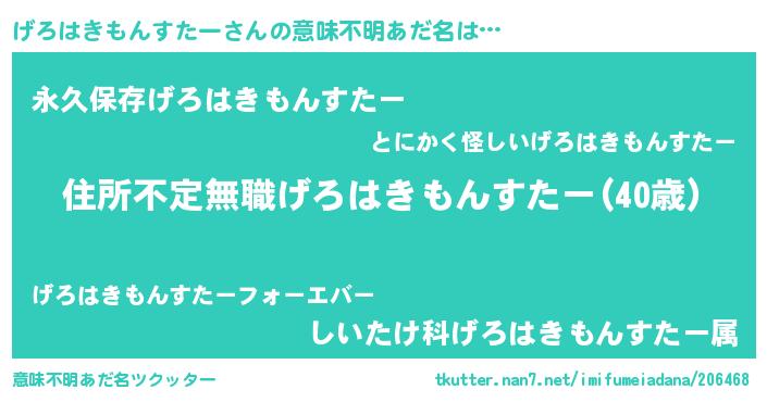 | 欧米人風あだ名 | 『ダレノガレげろはきもんすたー』 |