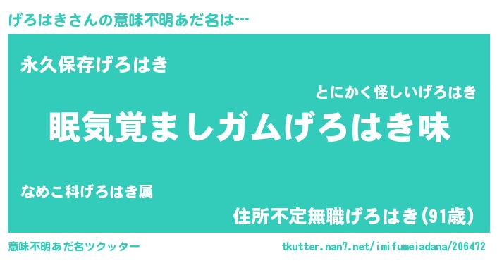 | ヘコむあだ名 | 『げろはき(小並感)』『げろぷりん』 |