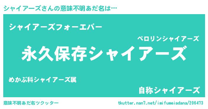 | 男性向けラノベタイトル風あだ名 | 『シャイアーズという概念が存在しない退屈な世界 』 |