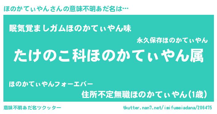 | 男性向けラノベタイトル風あだ名 | 『転生したらほのかてぃやんだった件』 |