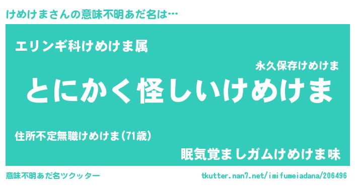 | ポケモン風あだ名 | 『ケメゴンZ』『ヒケメケマ』 |