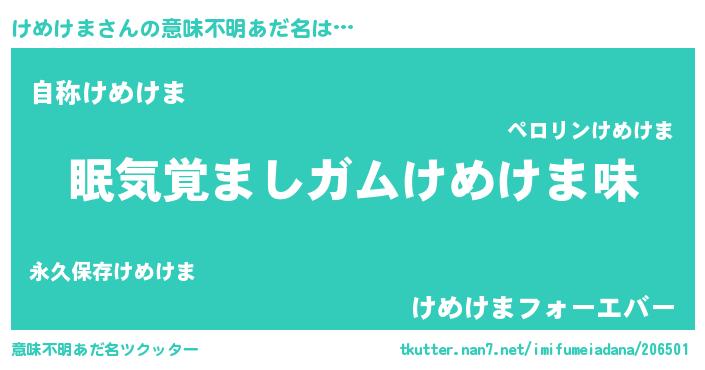 | 男性向けラノベタイトル風あだ名 | 『ノーゲーム・ノーケメケマ』 |
