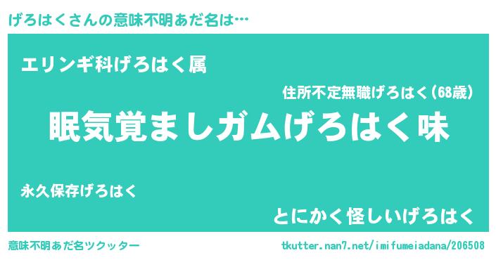 | ヘコむあだ名 | 『げろぷりん』『げろはく(震え声)』 |