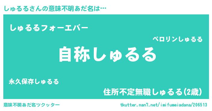 | 肩書あだ名 | 『しゅるる閣下』『しゅるる国家主席』 |