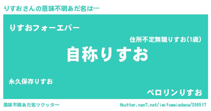 | 男性向けラノベタイトル風あだ名 | 『Re:りすおから始める異世界生活』 |