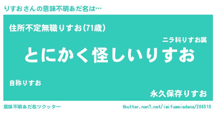 | 男性向けラノベタイトル風あだ名 | 『ダンジョンにりすおを求めるのは間違っているだろうか』 |