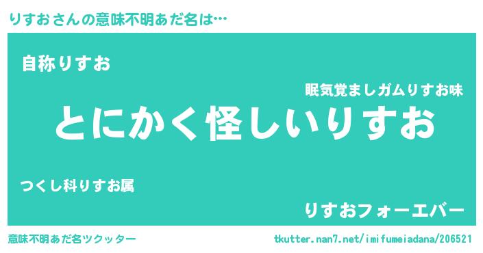 | 男性向けラノベタイトル風あだ名 | 『ダンジョンにりすおを求めるのは間違っているだろうか』 |