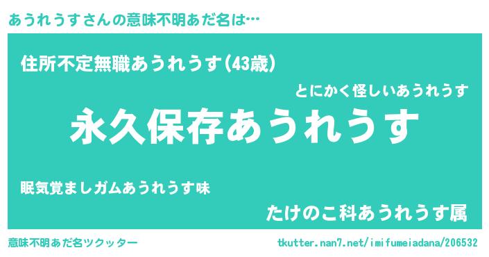 | 男性向けラノベタイトル風あだ名 | 『あうれうすという概念が存在しない退屈な世界 』 |