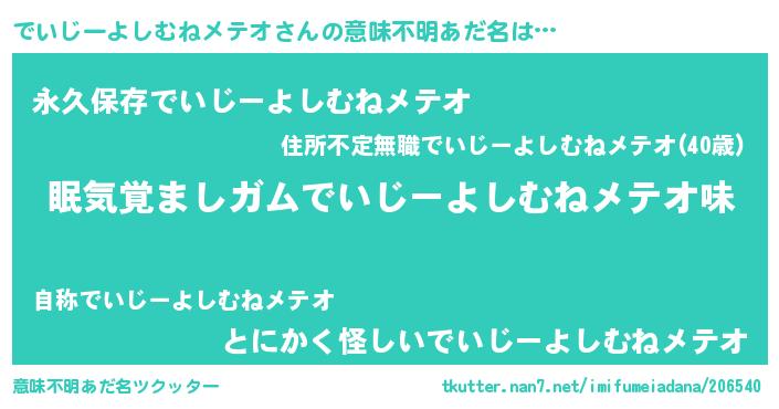 | ヘコむあだ名 | 『でいじーよしむねメテオ(笑)』『でいっぺ』 |