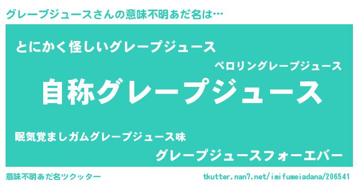 | 女子向けラノベタイトル風あだ名 | 『グレープジュースなんてお断りですっ。』 |