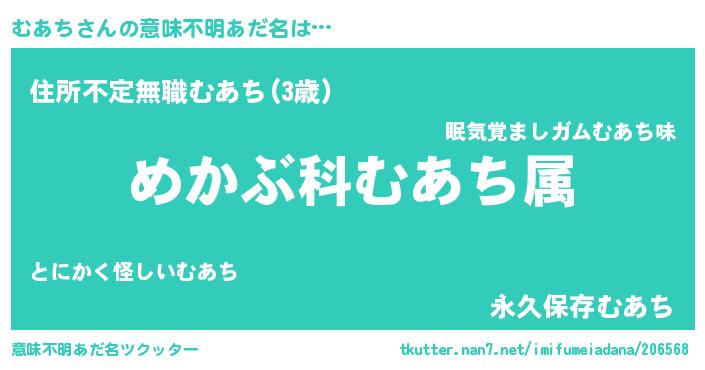 | ヘコむあだ名 | 『むあち(笑)』『むあお』『牛乳』 |