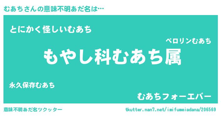| 男性向けラノベタイトル風あだ名 | 『転生したらむあちだった件』 |