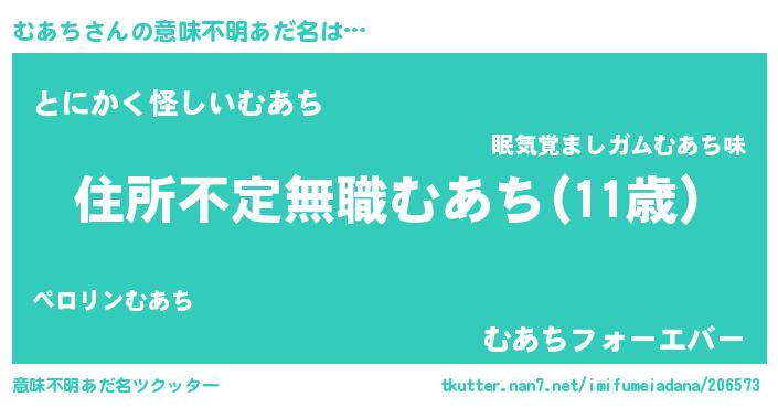 | 男性向けラノベタイトル風あだ名 | 『魔弾の王とむあち』『むあちの憂鬱』 |