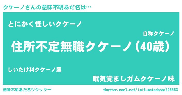 | 男性向けラノベタイトル風あだ名 | 『この素晴らしい世界にクケーノを!』 |