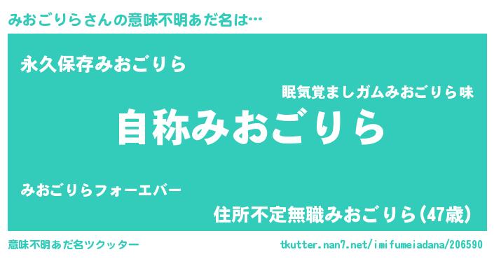 | 男性向けラノベタイトル風あだ名 | 『みおごりらに滅ぼされるだけの簡単なお仕事です』 |