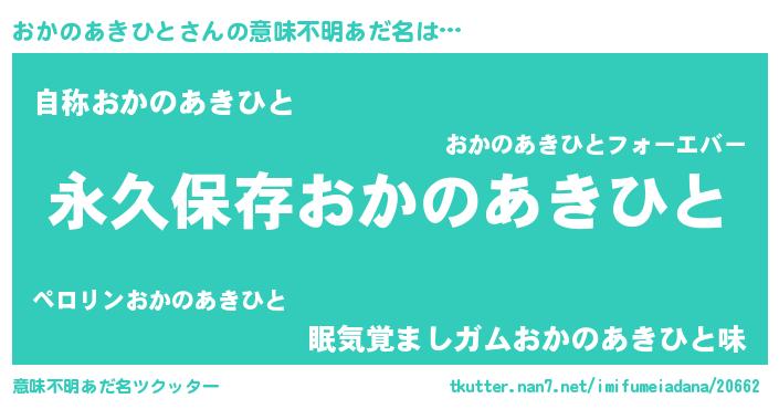 | ヘコむあだ名 | 『おかのあきひと(笑)』『豆乳』 |