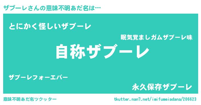 | 男性向けラノベタイトル風あだ名 | 『うちのザブーレが世界を掌握している!』 |