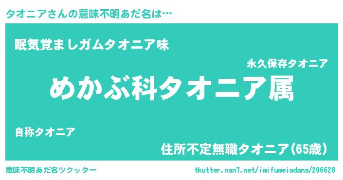 | 男性向けラノベタイトル風あだ名 | 『タオニアスレイヤー』『緋弾のタオニア』 |