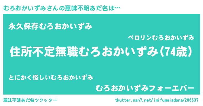 | 男性向けラノベタイトル風あだ名 | 『うちのむろおかいずみが世界を掌握している!』 |