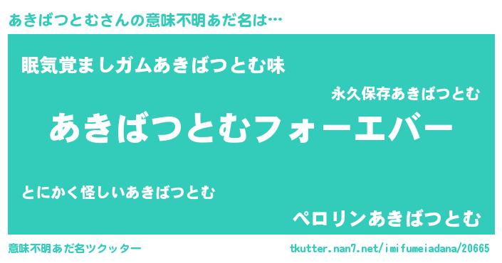 | 男性向けラノベタイトル風あだ名 | 『やはりあきばつとむの青春ラブコメはまちがっている 』 |