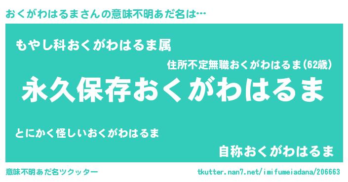 | 伝説のあだ名 | 『古文書に記された勇者おくがわはるま』 |