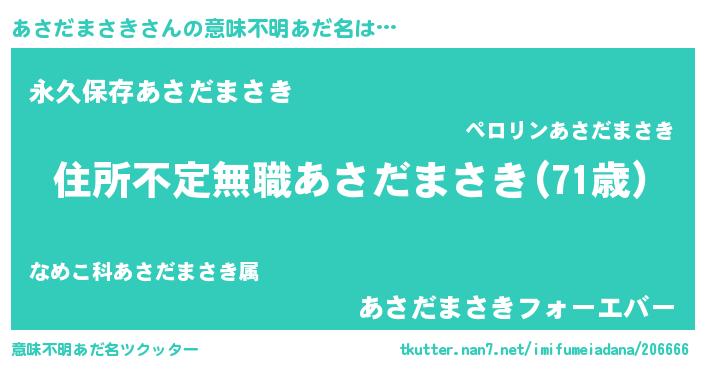 | ヘコむあだ名 | 『あさだまさき(苦笑)』『豆乳』 |