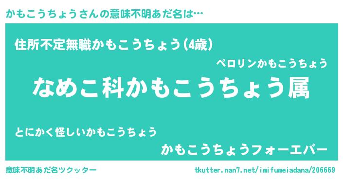 | 肩書あだ名 | 『かもこうちょう上級大将』 |