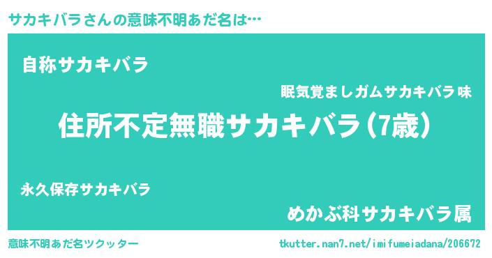 | 男性向けラノベタイトル風あだ名 | 『この素晴らしい世界にサカキバラを!』 |