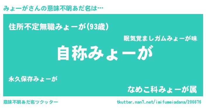 | 欧米人風あだ名 | 『みょーが・ステッグマイヤー』 |