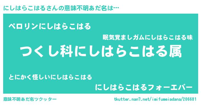 | 胡散臭い通販商品みたいなあだ名 | 『億万長者になれる水晶球…その名も「にしはらこはる」』 |