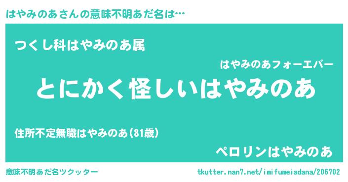 | ポケモン風あだ名 | 『ヒハヤミノア』『メロハッヤ』 |