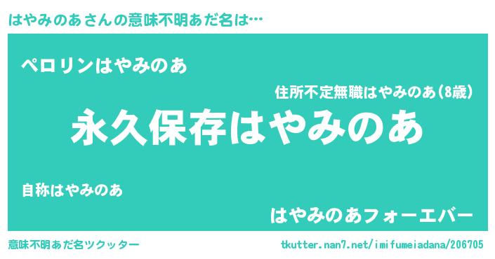 | 欧米人風あだ名 | 『はやみのあ・ステッグマイヤー』 |