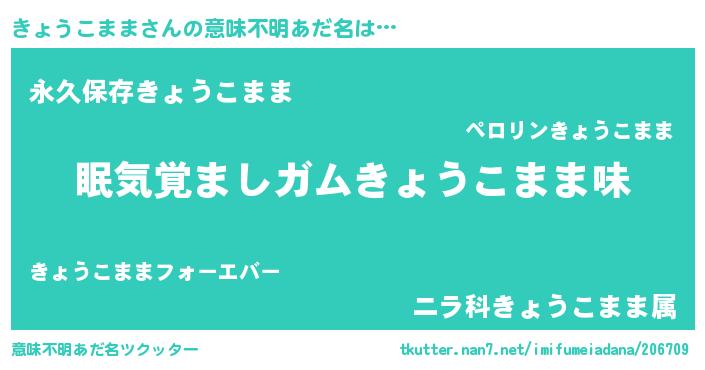 | ヘコむあだ名 | 『きょうこまま(遠い目)』『きょふぇ~』 |