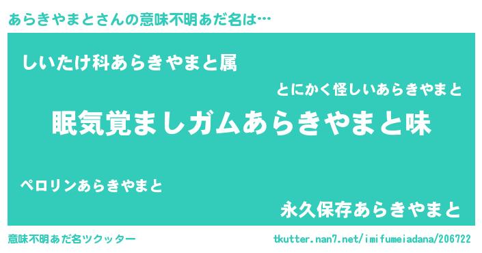 男性向けラノベタイトル風あだ名 | 『おまえをオタクにしてやるから、俺をあらきやまとにしてくれ! 』 |