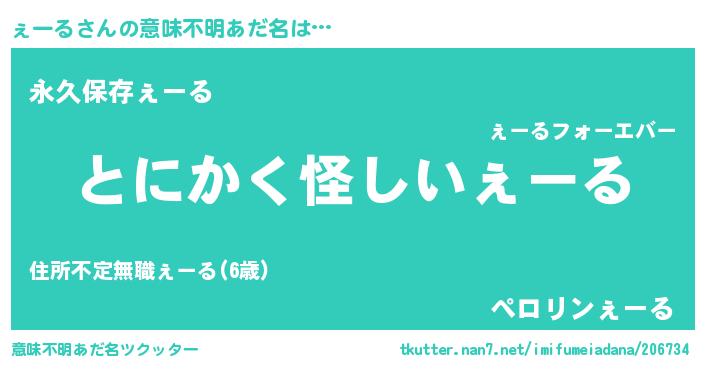 | 胡散臭い通販商品みたいなあだ名 | 『信頼と実績のサプリメント…その名も「ぇーる」』 |