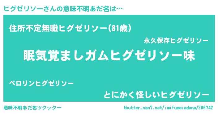 | 男性向けラノベタイトル風あだ名 | 『ノーゲーム・ノーヒグゼリソー』 |