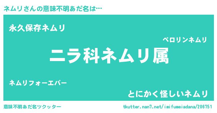 | ヘコむあだ名 | 『ネムリ(笑)』『ネムっ子』 |