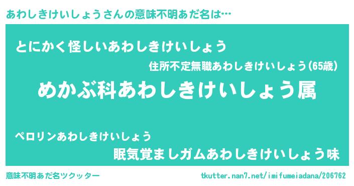| 料理風あだ名 | 『あわしきけいしょうごはん』 |