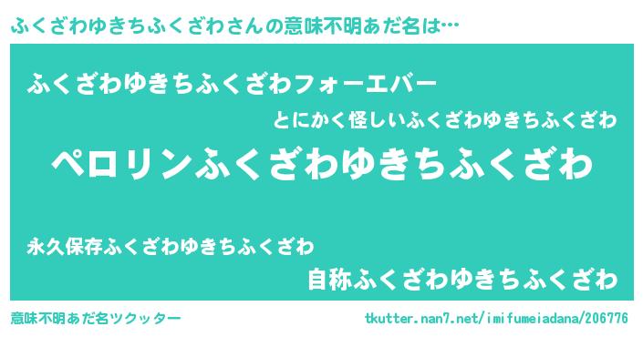 | 男性向けラノベタイトル風あだ名 | 『ふくざわゆきちふくざわの憂鬱』 |